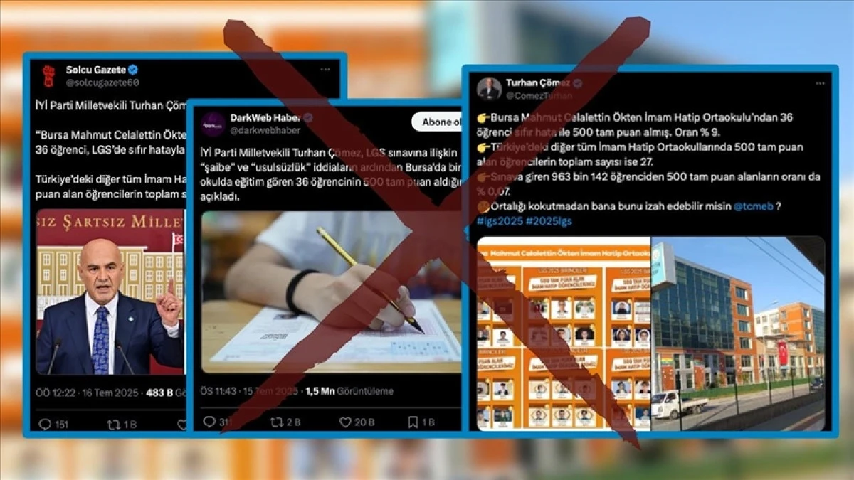 Anadolu Ajansı (AA) Teyit Hattı, iddiayı araştırdı ve gerçeği ortaya çıkardı. Bursa İl Milli Eğitim Müdürlüğü’nün açıklamasına göre, Bursa genelinde 17 okuldan toplam 20 öğrenci LGS’de 500 tam puan aldı. Bu öğrencilerden yalnızca 2’sinin imam hatip ortaokulu mezunu olduğu belirtildi. Mahmut Celalettin Ökten İmam Hatip Ortaokulu’nun resmi Instagram hesabında yapılan paylaşımda, Türkiye genelinde LGS’de tam puan alan imam hatipli öğrencilerin tebrik edildiği, ancak bu öğrencilerin farklı okullardan olduğu anlaşıldı. Paylaşımda yer alan isim ve fotoğrafların, sadece bu okula değil, Türkiye’deki çeşitli Anadolu İmam Hatip Lisesi ve Ortaokulları’na ait olduğu tespit edildi.